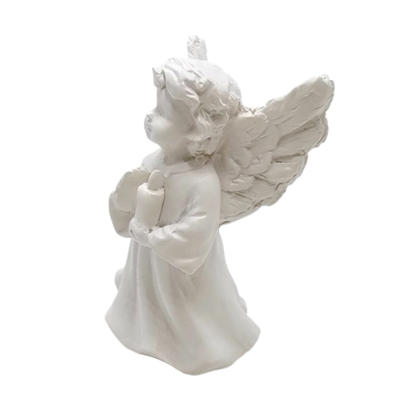 W rączkach trzyma świecę, symbol nadziei i światła, co dodaje figurce magicznego i pełnego przesłania charakteru. Aniołek ubrany jest w uroczą, prostą sukienkę, a jego piękne, delikatne skrzydełka są misternie wykonane. Urocza buzia z łagodnym wyrazem sprawia, że figurka emanuje spokojem.