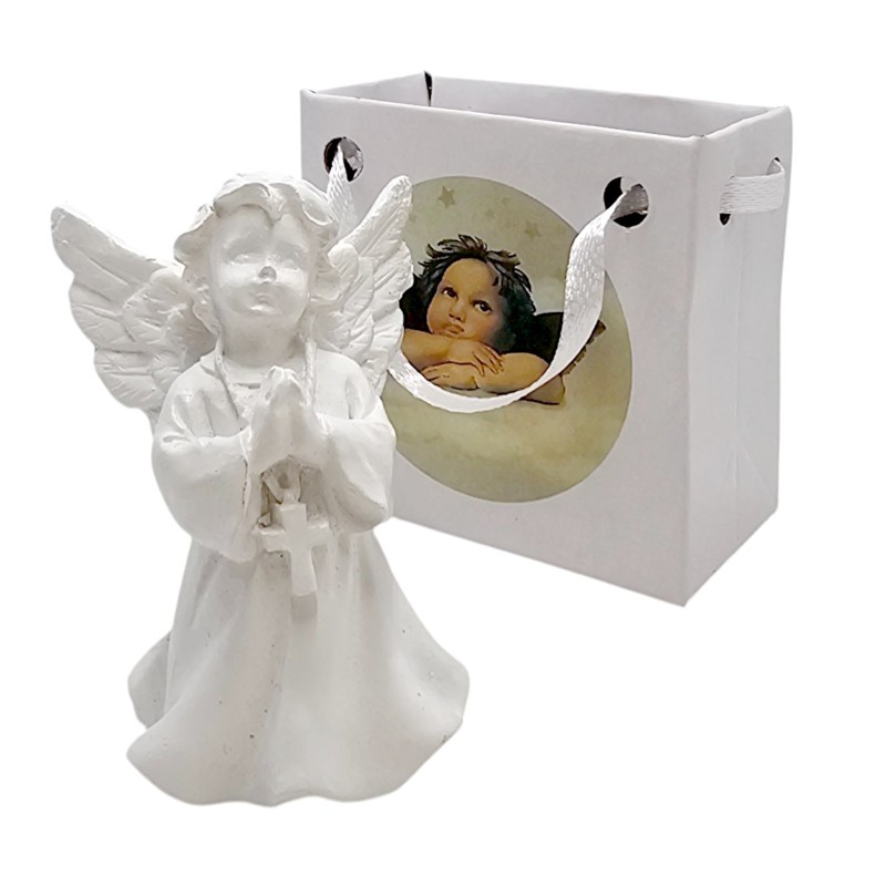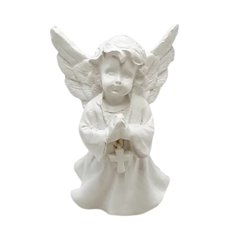 Figurka przedstawia aniołka w postawie modlitewnej, z rączkami złożonymi do modlitwy. Ta pełna pokoju poza symbolizuje duchowość i oddanie. Aniołek ubrany jest w uroczą, prostą sukienkę, a jego piękne, delikatne skrzydełka są misternie wykonane. Urocza buzia z łagodnym wyrazem sprawia, że figurka emanuje spokojem.