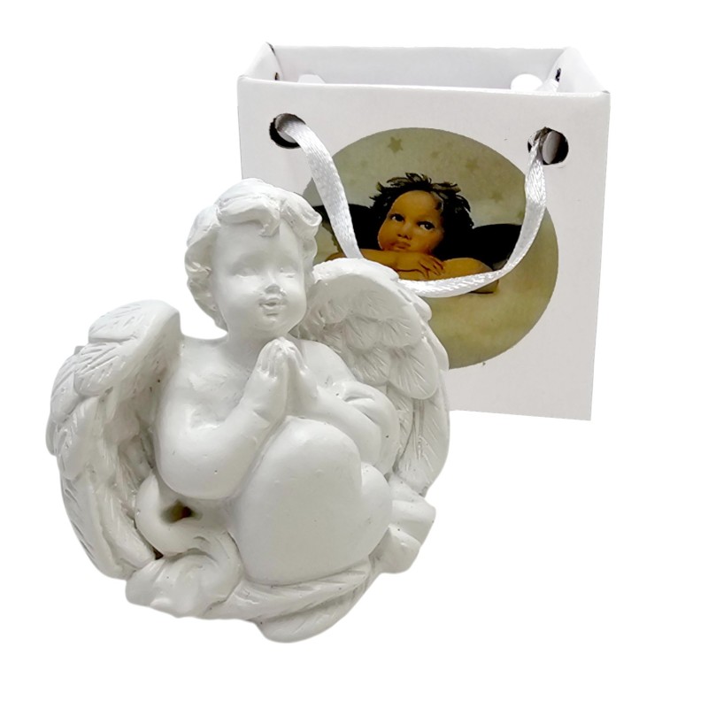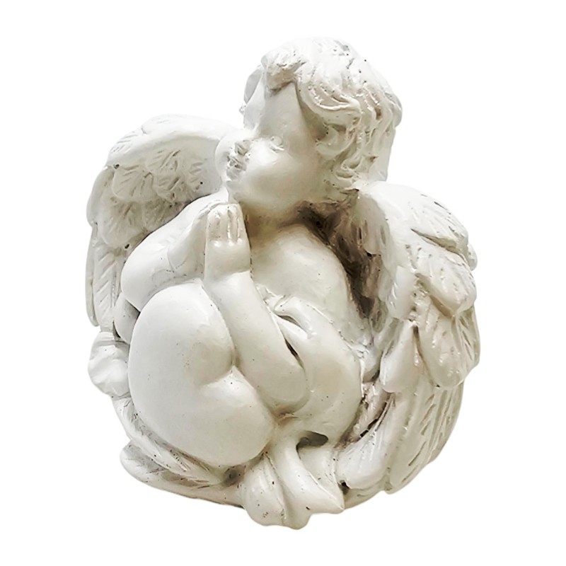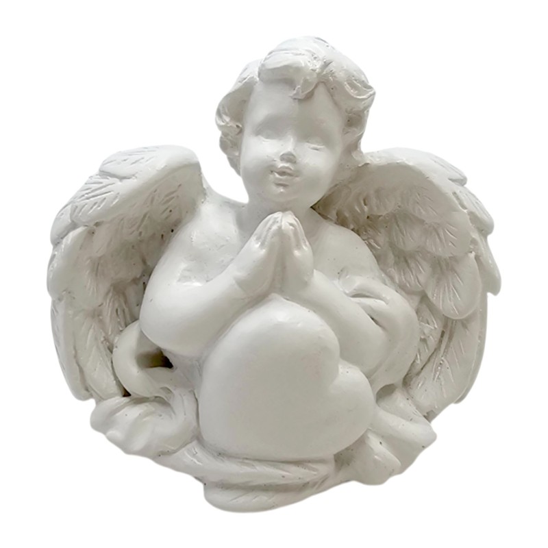 Figurka ma kompaktowe wymiary 45x48 mm, co czyni ją idealnie dyskretnym i uroczym drobiazgiem. Wykonana jest z trwałej żywicy syntetycznej i pomalowana na czysty, symboliczny biały kolor. Aniołek trzyma w rączkach piękne, duże serce, co podkreśla miłość i dobroć, którą symbolizuje. Jego skrzydełka są pięknie wykonane, z dbałością o detale, co nadaje figurce wyjątkowego uroku.