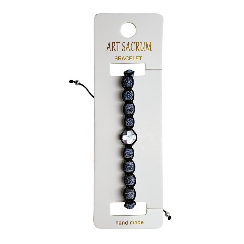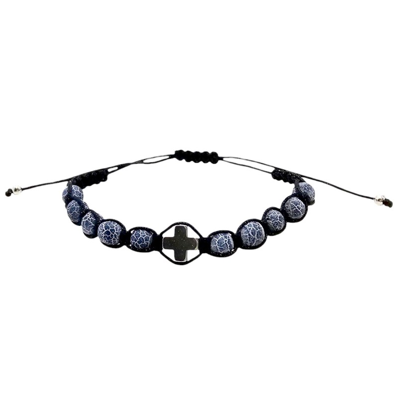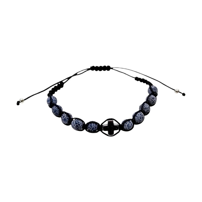 Bransoletka składa się z 10 gładkich koralików z szarego kamienia o wielkości 6 mm. Nawleczono je na wytrzymały, czarny sznurek, co zapewnia trwałość i komfort noszenia. Centralnym punktem bransoletki jest minimalistyczny krzyżyk z hematytu o wymiarach 8x8 mm, który nadaje całości subtelnego, a jednocześnie wyraźnego charakteru.