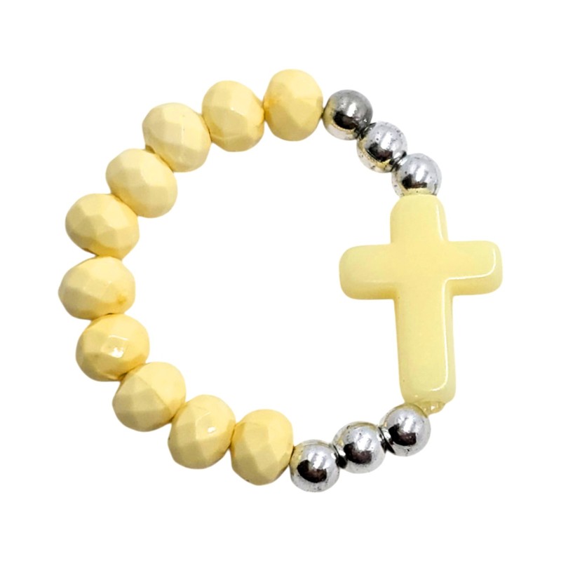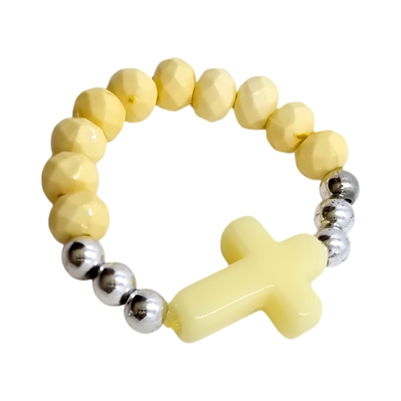 Ta bardzo mała żółta dziesiątka różańca to idealne rozwiązanie dla tych, którzy pragną dyskretnie modlić się na palcu. Jej kompaktowe rozmiary i uroczy design sprawiają, że to piękny i osobisty przedmiot wiary.