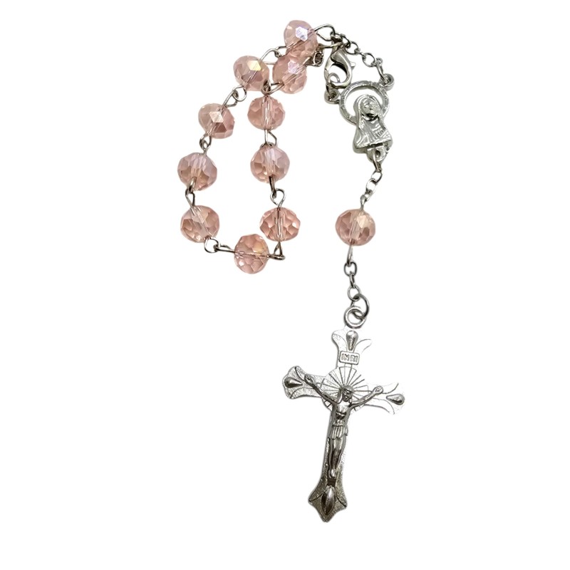 Odkryj subtelne piękno i duchową delikatność z naszą kryształową dziesiątką różańca w odcieniu pastelowego różu. Ta elegancka i praktyczna dziesiątka to idealny sposób, by mieć symbol wiary zawsze blisko siebie.