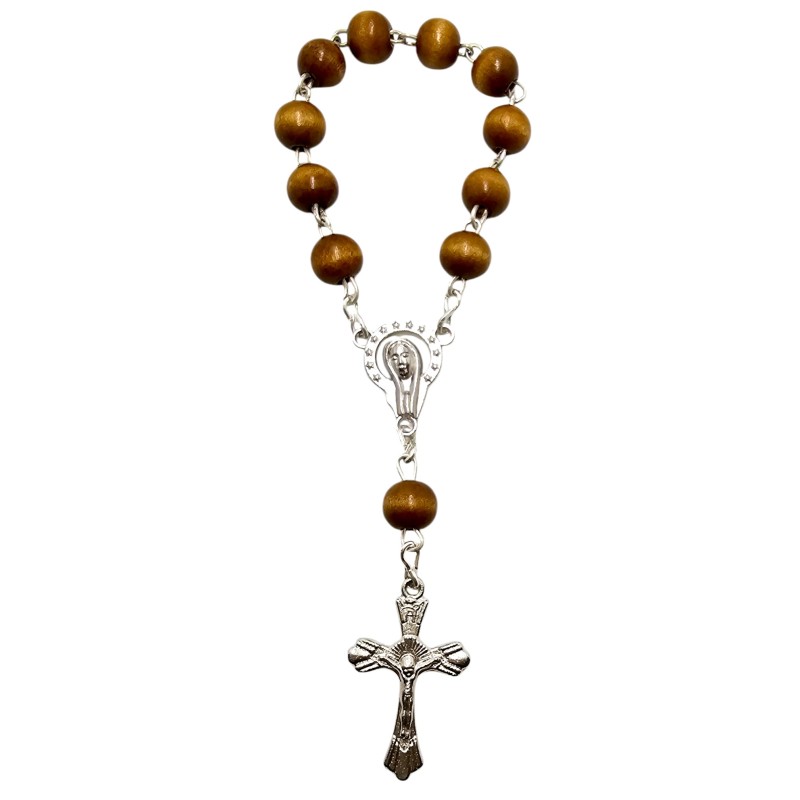 Miej modlitwę zawsze pod ręką z tą elegancką, drewnianą dziesiątką różańca! Idealna do noszenia przy sobie, ta poręczna dziesiątka o długości 12 cm to doskonały sposób na duchowe skupienie w każdej chwili. Wykonana z gładkich, pięknie wykonanych koralików.