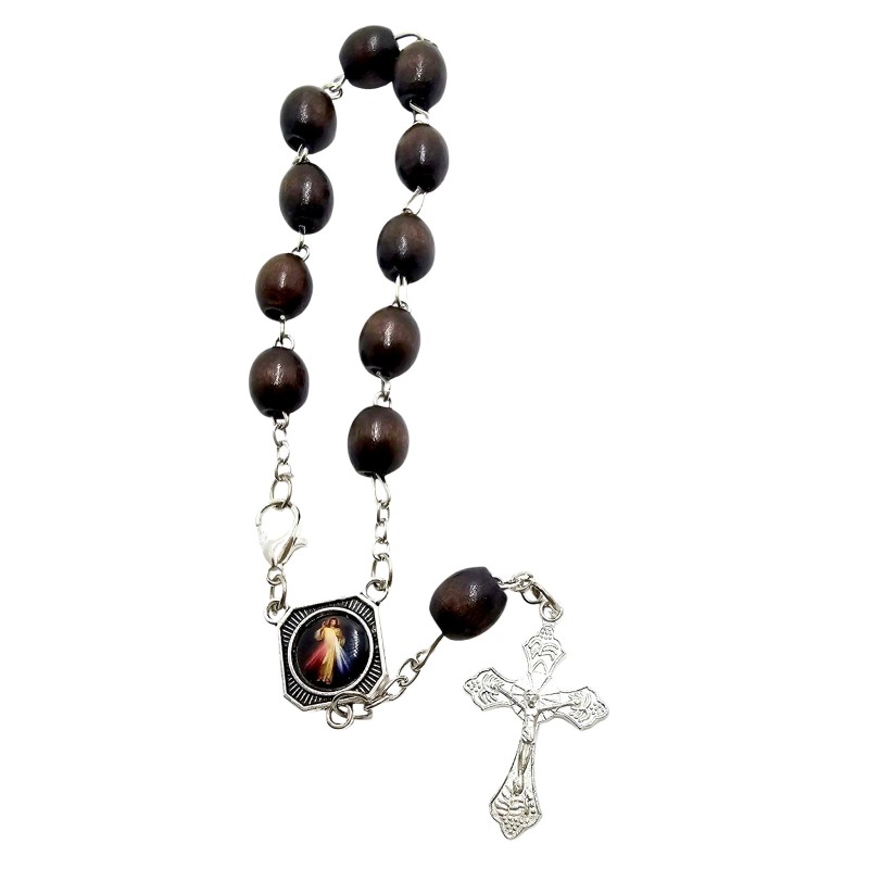 Zapinana Dziesiątka Różańca Drewniana - Jezus Miłosierny / Św. Krzysztof, Ozdobny Krzyż