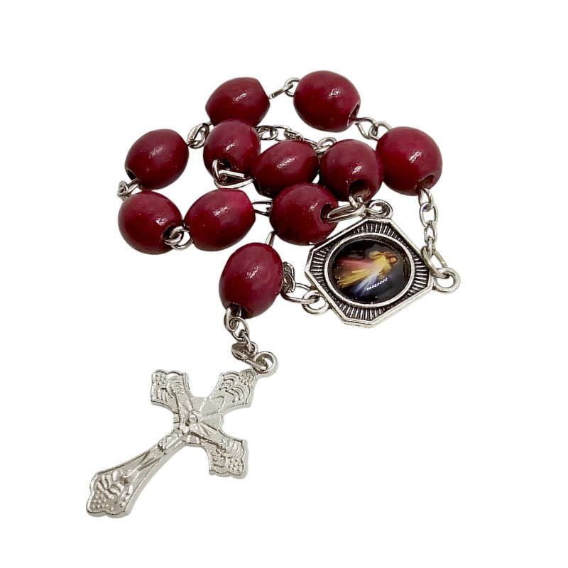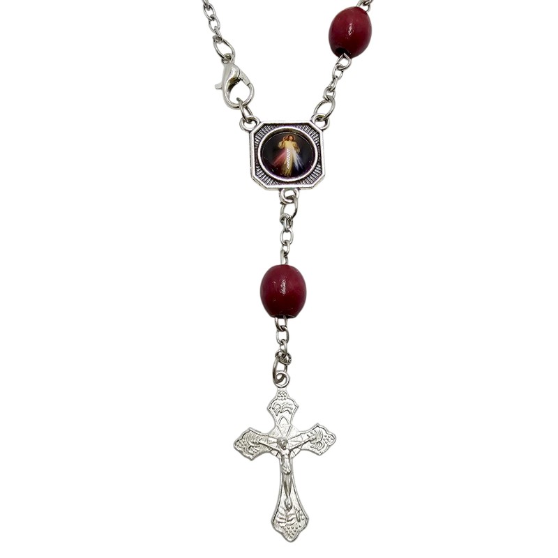 Zapinana Dziesiątka Różańca Drewniana - Jezus Miłosierny / Św. Krzysztof, Ozdobny Krzyż