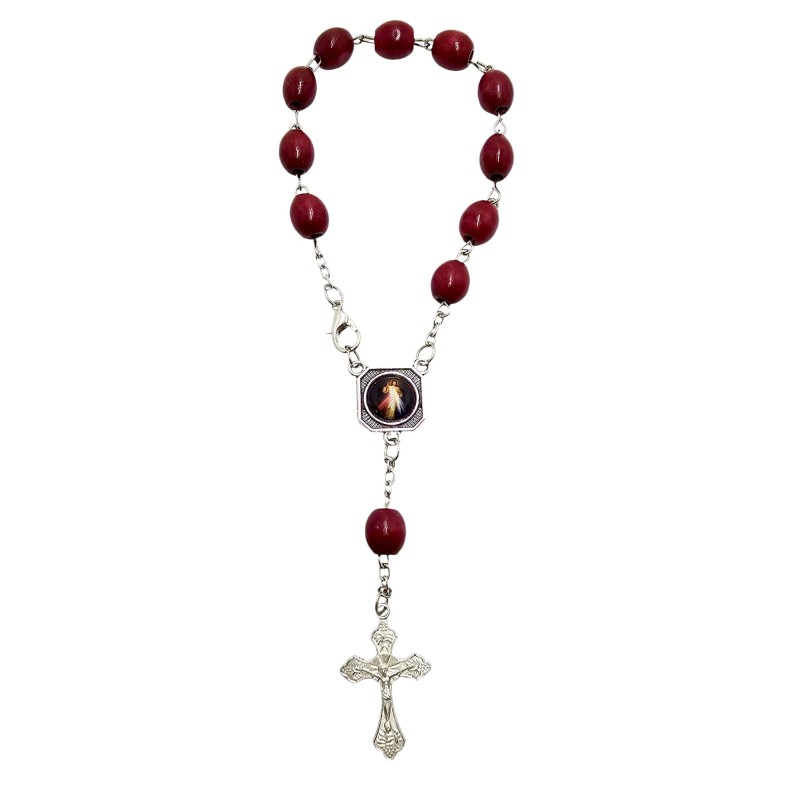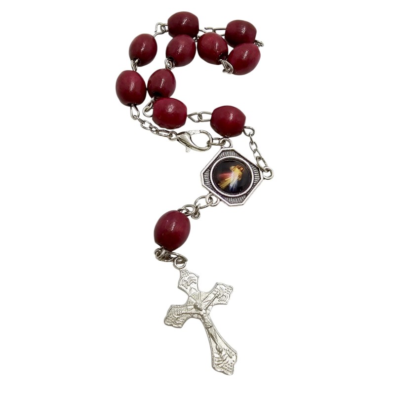 Praktyczna i pełna duchowego znaczenia zapinana dziesiątka różańca. Wykonana z naturalnych, drewnianych koralików o średnicy 8 mm na trwałym łańcuszku. Łącznikiem dziesiątki jest dwustronny medalik przedstawiający z jednej strony Jezusa Miłosiernego, a z drugiej patrona podróżujących - Świętego Krzysztofa. Całość wieńczy ozdobny krzyż o wymiarach 28x18 mm. Dzięki zapięciu dziesiątkę można zawiesić w aucie. To piękny i osobisty sposób na codzienną modlitwę.