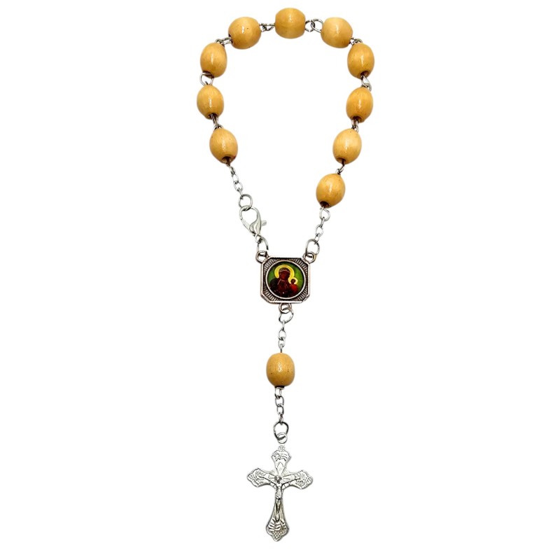 Zapinana Dziesiątka Różańca Drewniana - Matka Boska Częstochowska / Św. Krzysztof, Ozdobny Krzyż