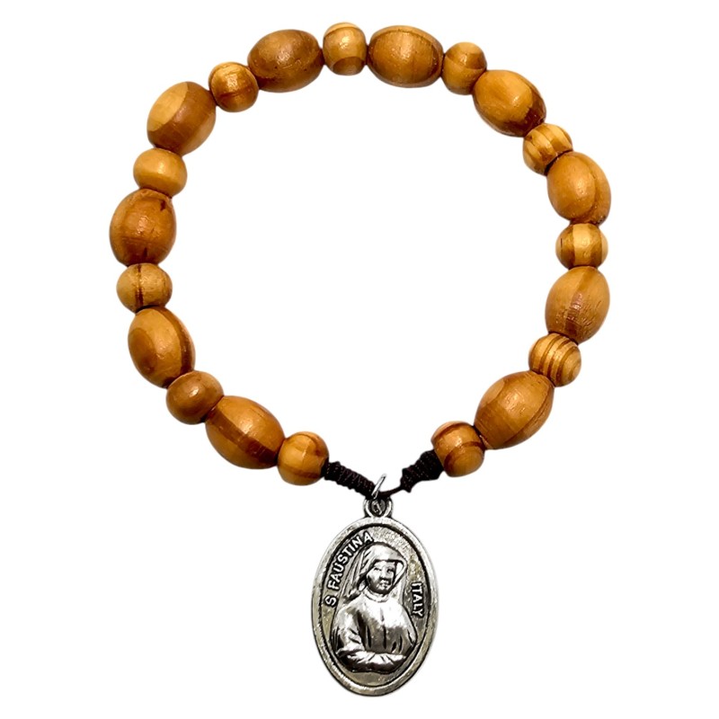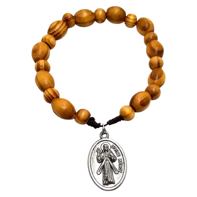 Ta drewniana koronka na rękę to nie tylko element biżuterii, ale przede wszystkim praktyczne narzędzie do odmawiania Koronki do Bożego Miłosierdzia w dowolnym miejscu i czasie.