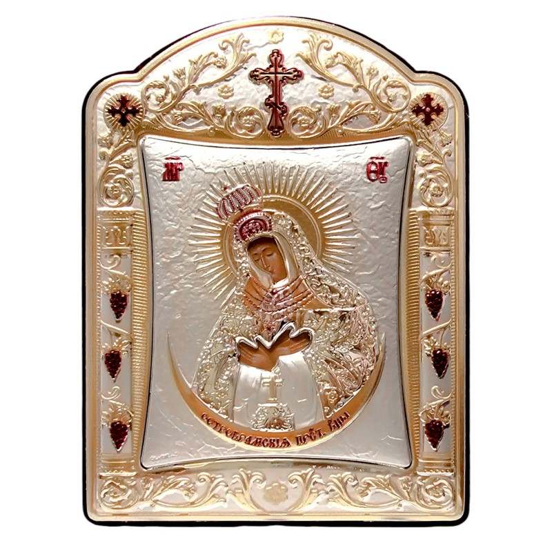 Opis produktu: Wprowadź do swojego domu atmosferę duchowej harmonii i piękna dzięki temu wyjątkowemu srebrnemu obrazkowi z wizerunkiem Matki Bożej Ostrobramskiej. To ikoniczne przedstawienie, o wymiarach około 15,5x11,5 cm, wyróżnia się pięknym zdobieniem i misternym wykonaniem w szlachetnym srebrze.