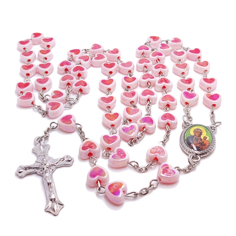 Różowy Różaniec Matka Boska Częstochowska - Serce.