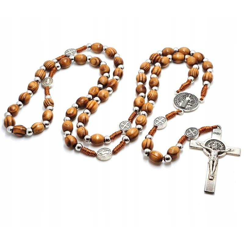 Drewniany Różaniec ze Św. Benedyktem - Symbol Ochrony i Wiary.