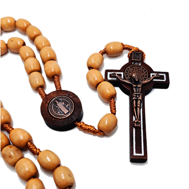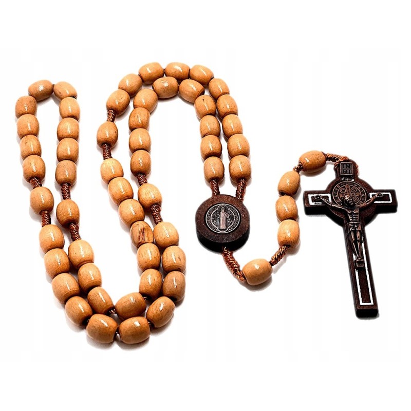 Drewniany Różaniec ze Św. Benedyktem