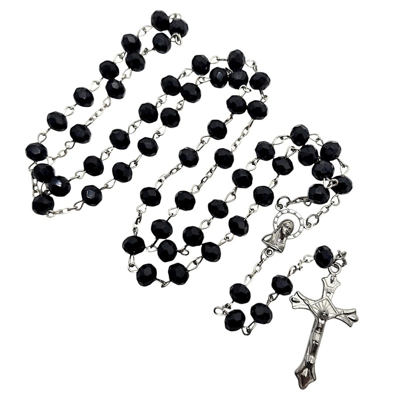 Odkryj wyjątkowy, czarny różaniec plastikowy, który zachwyca swoim wyglądem. Koraliki przypominające małe kryształki odbijają światło, tworząc efektowny blask. Łącznik z wizerunkiem Matki Boskiej oraz elegancki krzyż zwieńczający różaniec dodają mu wyjątkowego charakteru. Ten lekki i trwały różaniec to idealny wybór dla osób ceniących oryginalny design i wygodę użytkowania.
