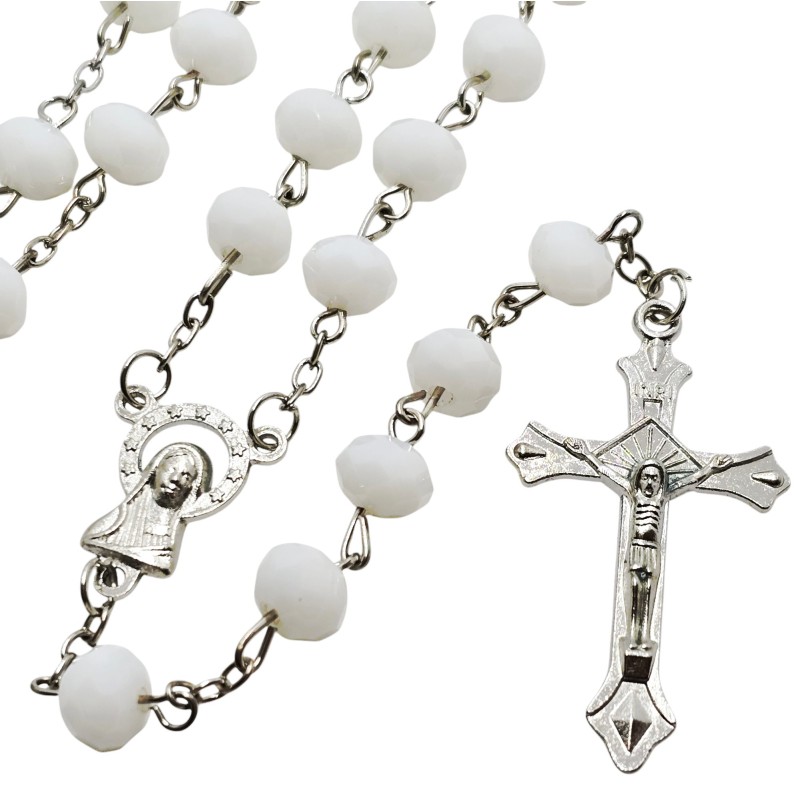 Odkryj wyjątkowy, biały różaniec plastikowy, który zachwyca swoim wyglądem. Koraliki przypominające małe kryształki odbijają światło, tworząc efektowny blask. Łącznik z wizerunkiem Matki Boskiej oraz elegancki krzyż zwieńczający różaniec dodają mu wyjątkowego charakteru. Ten lekki i trwały różaniec to idealny wybór dla osób ceniących oryginalny design i wygodę użytkowania.