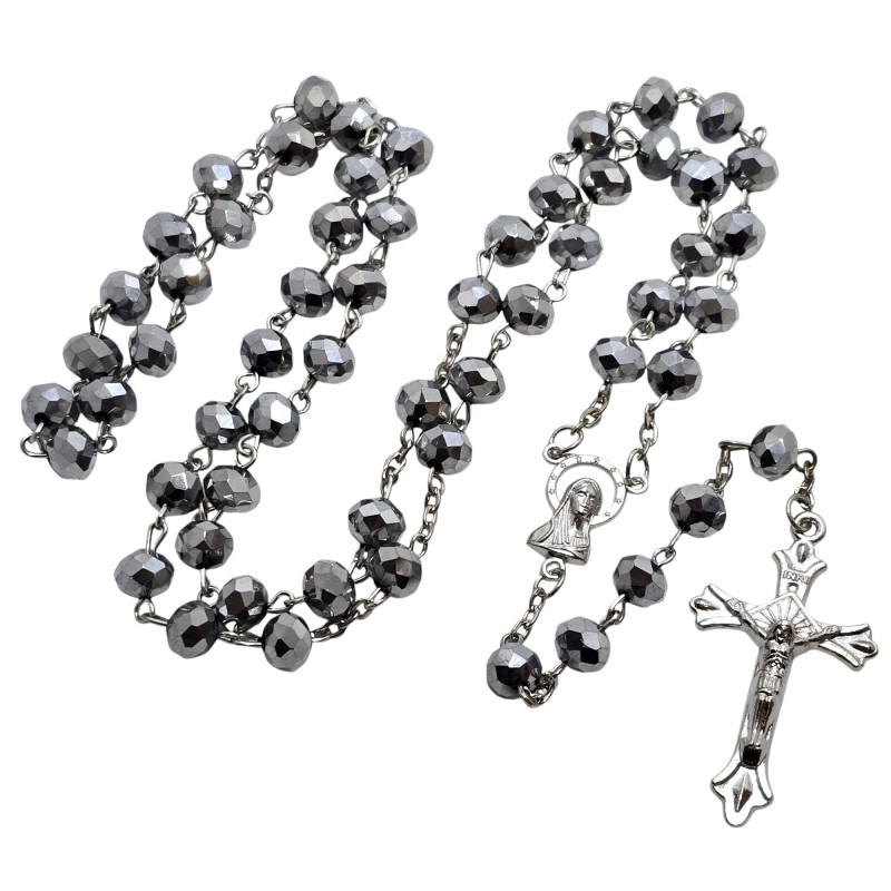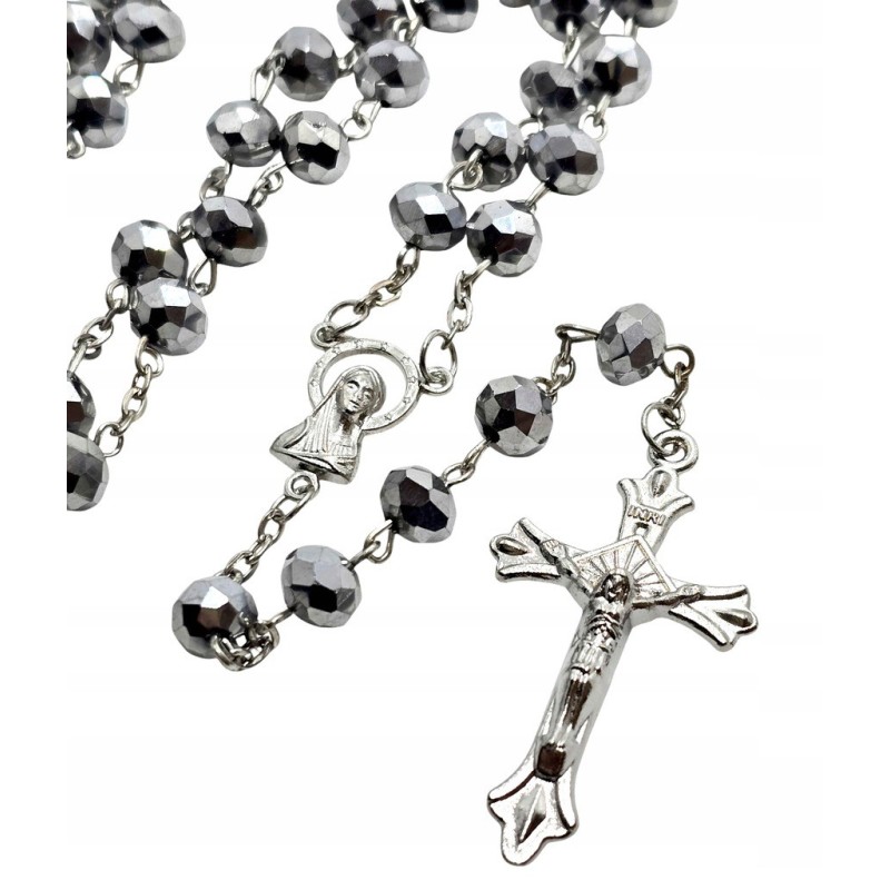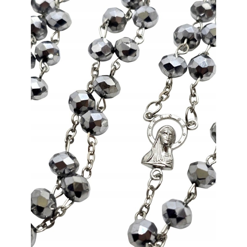 Odkryj wyjątkowy, srebrny różaniec plastikowy, który zachwyca swoim wyglądem. Koraliki przypominające małe kryształki odbijają światło, tworząc efektowny blask. Łącznik z wizerunkiem Matki Boskiej oraz elegancki krzyż zwieńczający różaniec dodają mu wyjątkowego charakteru. Ten lekki i trwały różaniec to idealny wybór dla osób ceniących oryginalny design i wygodę użytkowania.