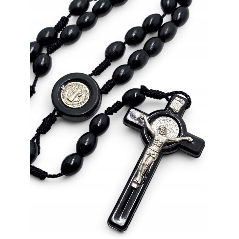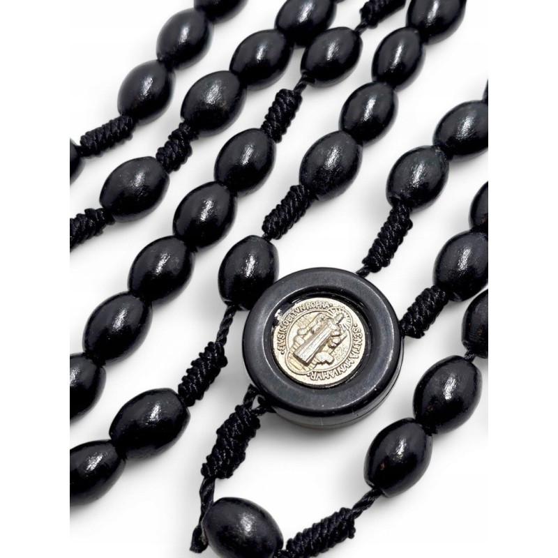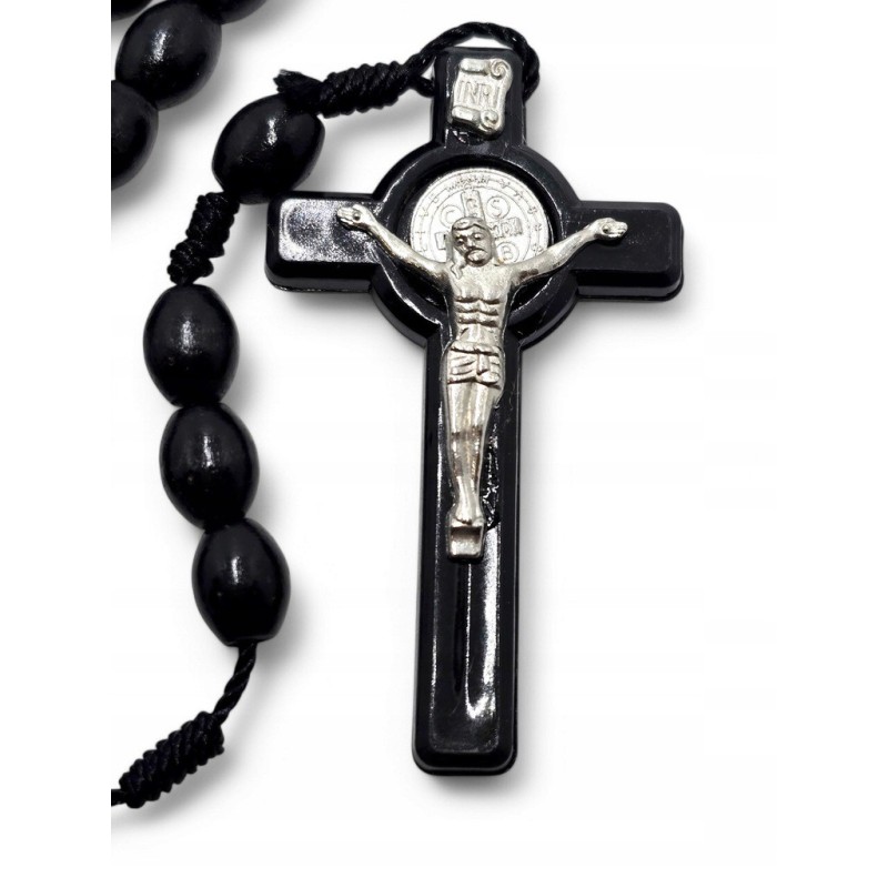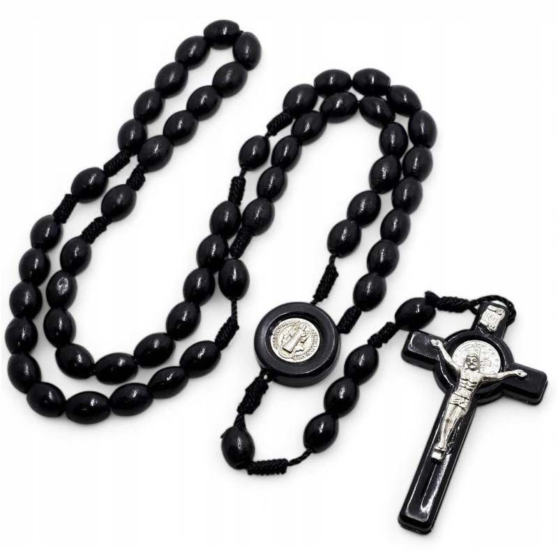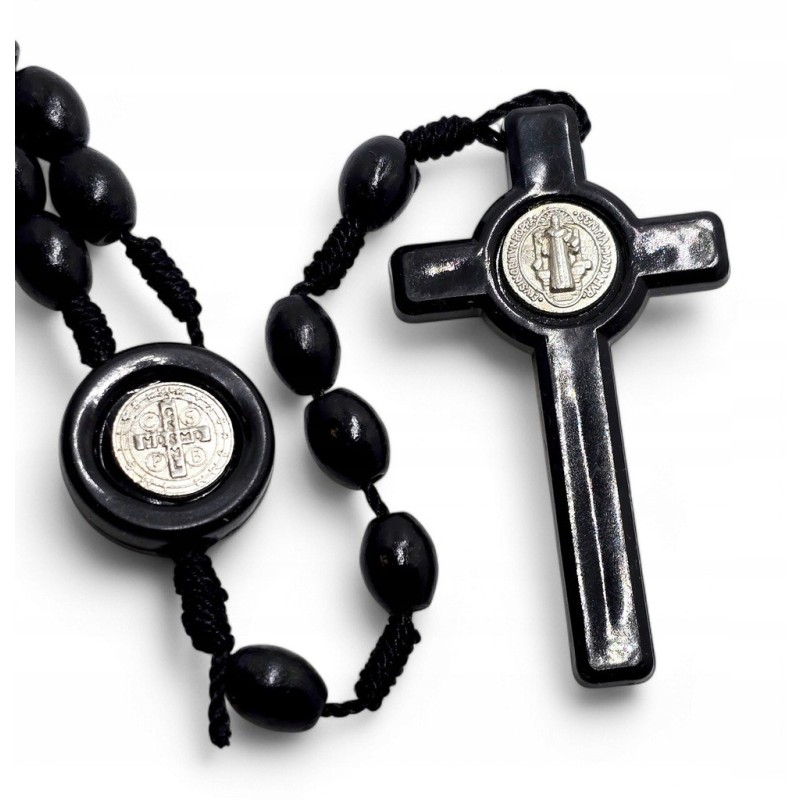 Odkryj siłę i elegancję czarnego, drewnianego różańca, idealnego do codziennej modlitwy. Owalne koraliki, nawleczone na sznurek, zapewniają komfortowe odmawianie różańca. Łącznik i krzyż z wizerunkami św. Benedykta dodają mu duchowej mocy i symboliki. Ten solidny różaniec to doskonały wybór dla osób ceniących tradycyjne wykonanie i głęboką symbolikę.