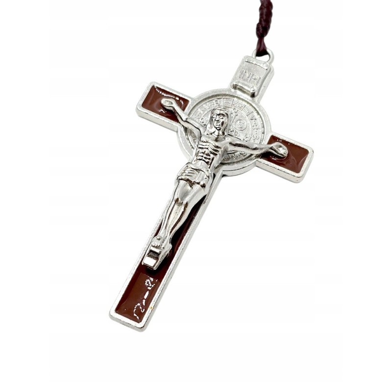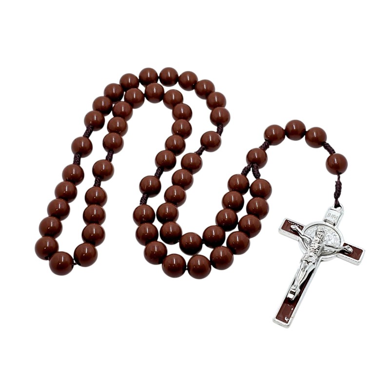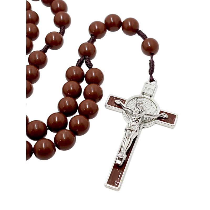 Odkryj prostotę i siłę modlitwy z naszym brązowym różańcem. Ten pokaźny różaniec wykonany jest z plastiku, ma duże koraliki i piękny metalowy krzyż św. Benedykta w kolorze brązowym. Całość wykonana jest na brązowym sznurku. Różaniec ten jest idealny do modlitwy w zaciszu domowym.