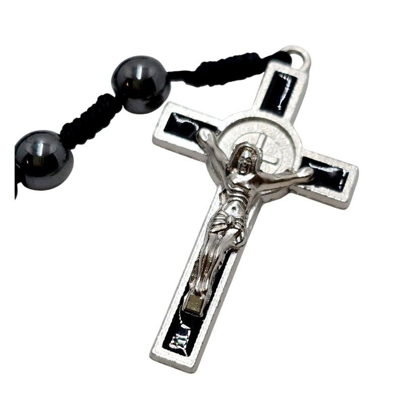 Krzyż św. Benedykta wzmacnia duchowy charakter różańca.
