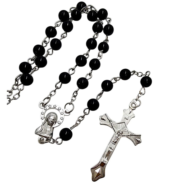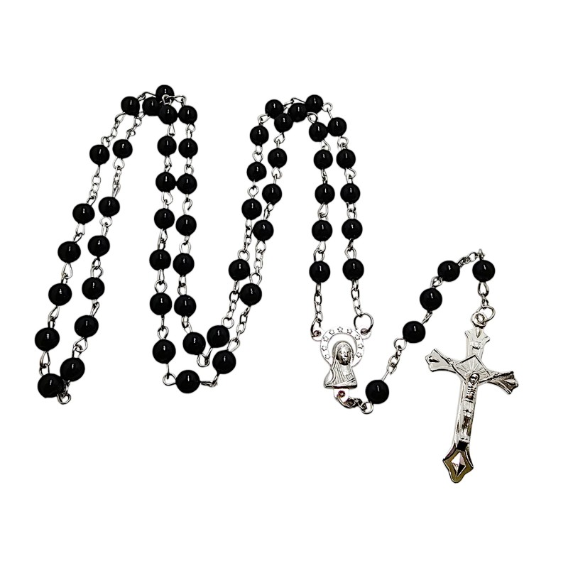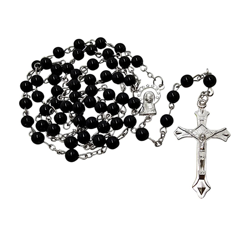 Odkryj siłę i głębię modlitwy z tym eleganckim, czarnym różańcem, który łączy w sobie prostotę z duchowym znaczeniem. Wykonany z wytrzymałych, plastikowych koralików o rozmiarze 6 mm, jest lekki i przyjemny w dotyku, idealny do codziennego użytku i kontemplacji. Jego głęboki, czarny kolor symbolizuje powagę i skupienie.