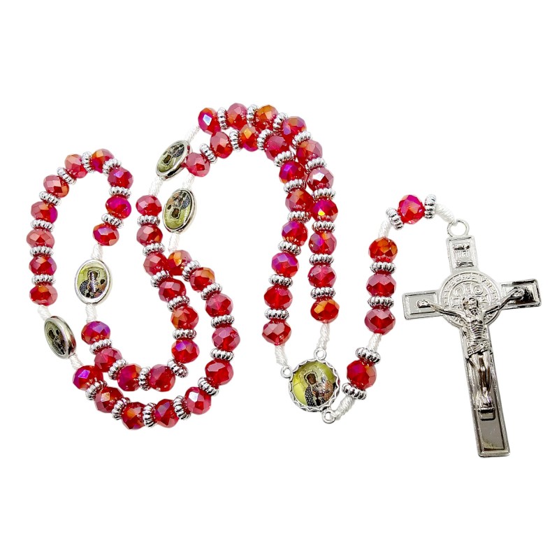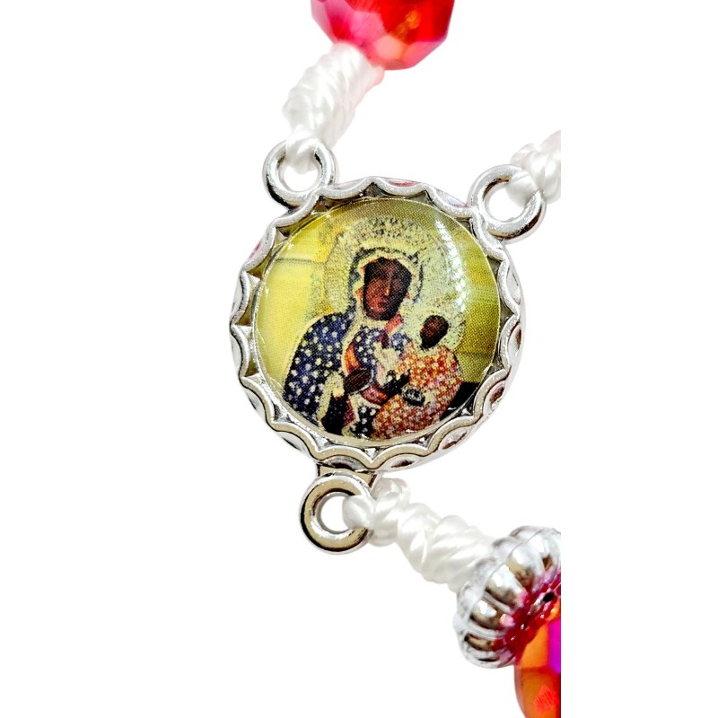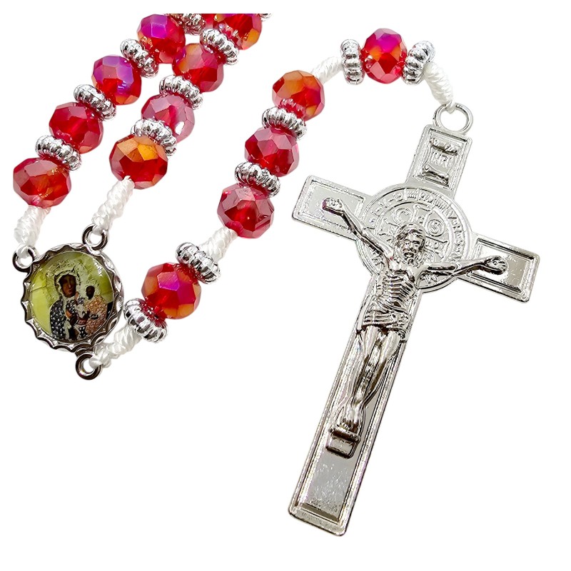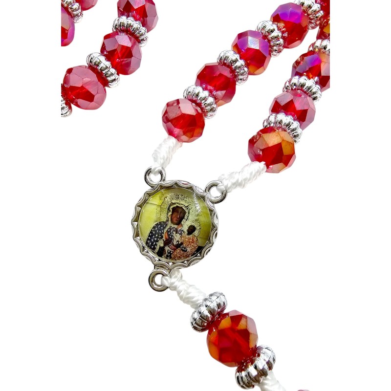 Czerwony Kryształowy Różaniec Matki Boskiej Częstochowskiej.