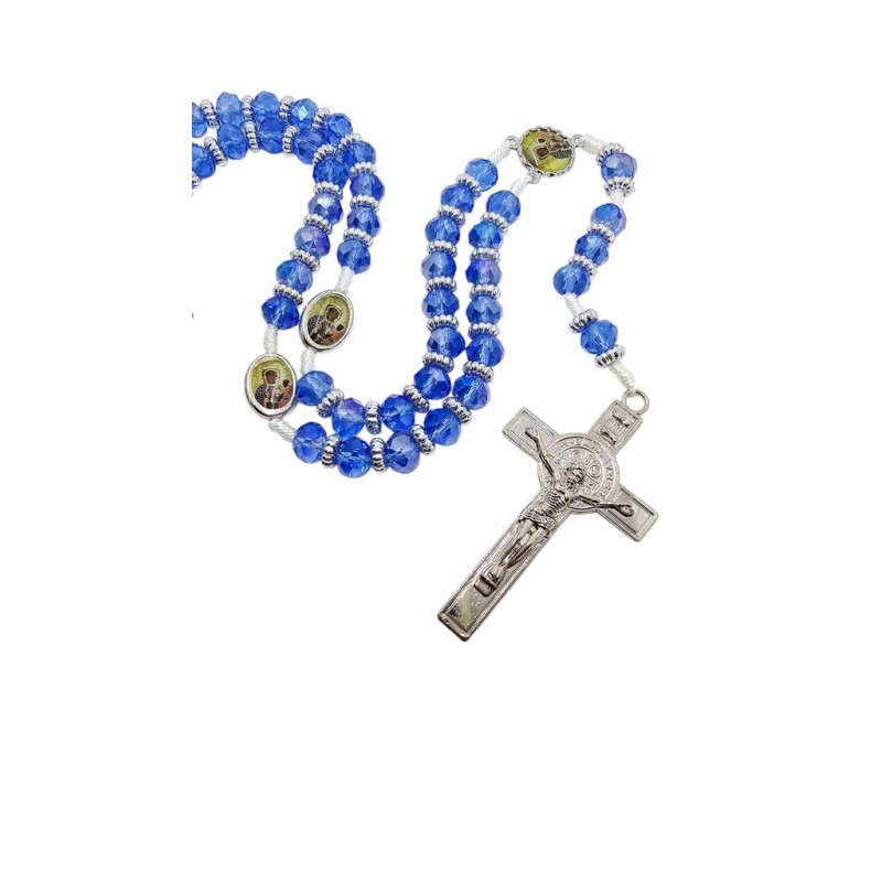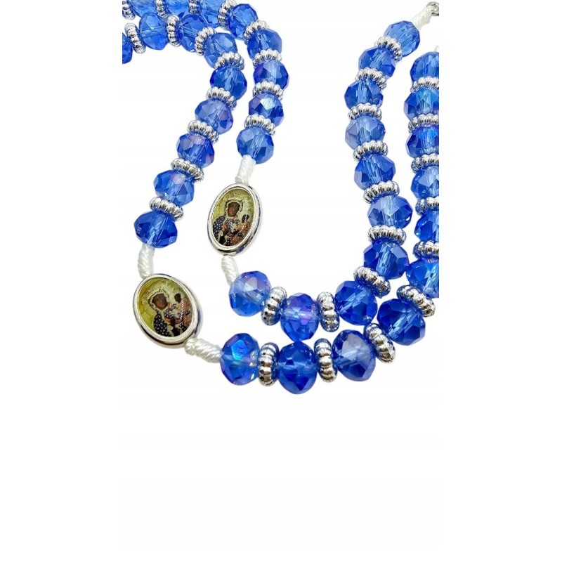 Niebieski Kryształowy Różaniec Matki Boskiej Częstochowskiej.