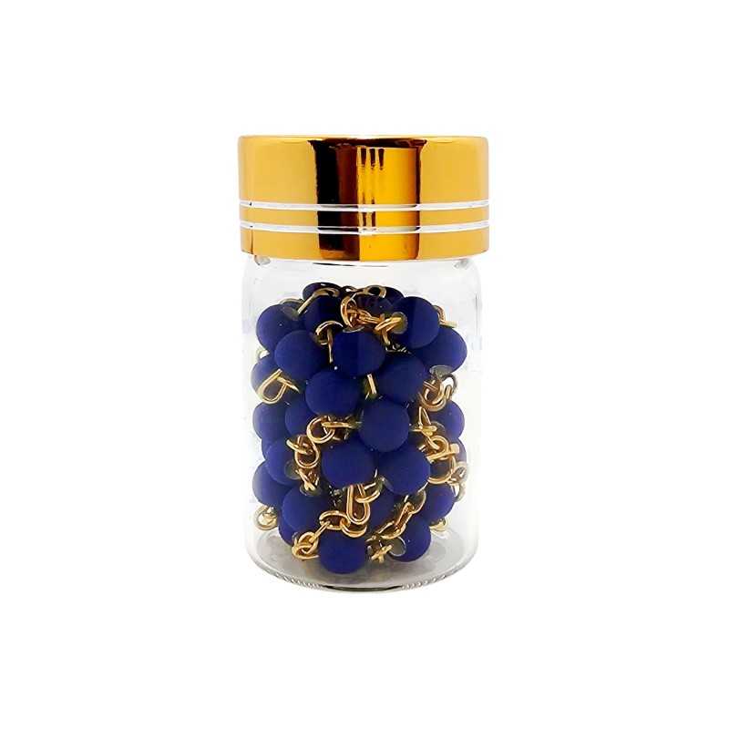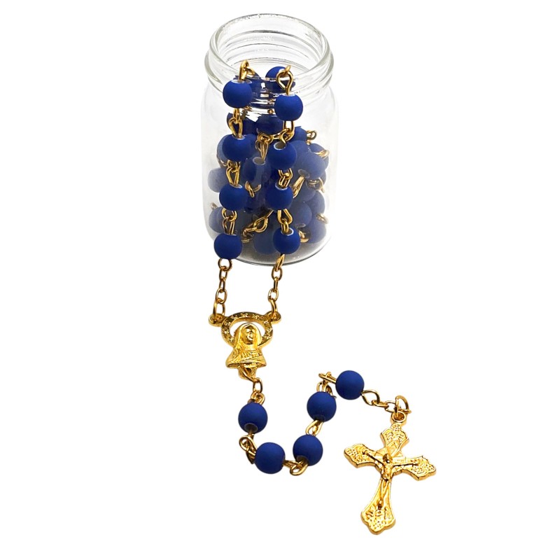 Elegancki Niebieski Różaniec na Złotym Łańcuszku w Słoiczku - Religijny Prezent Premium.