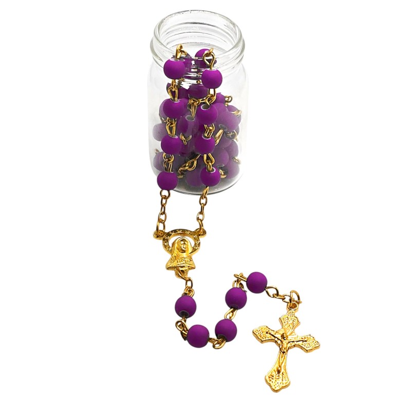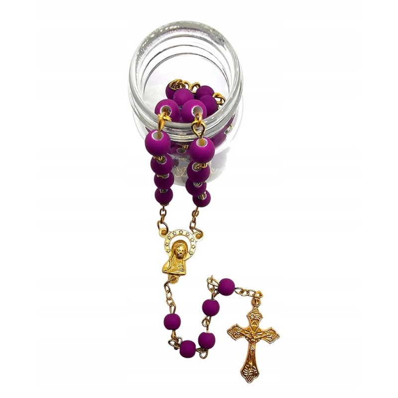Elegancki Fioletowy Różaniec na Złotym Łańcuszku w Słoiczku - Religijny Prezent Premium.