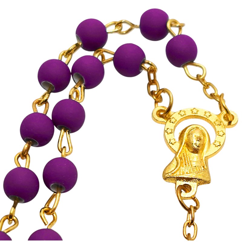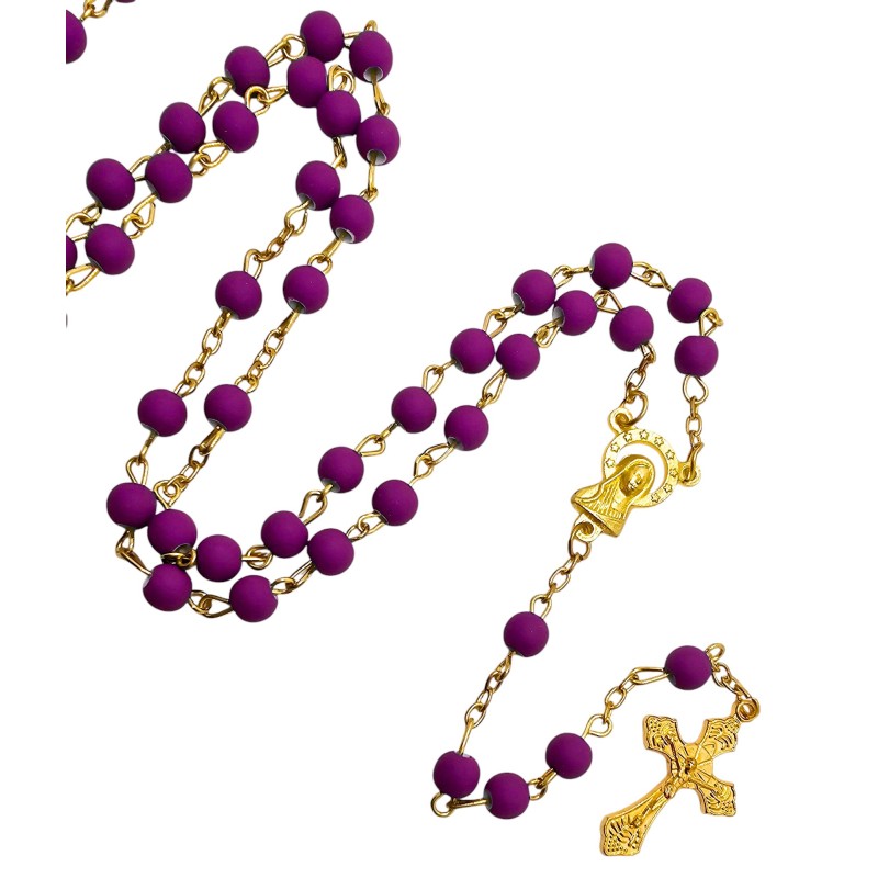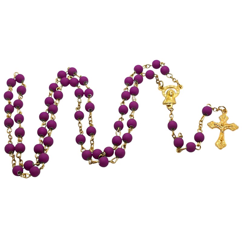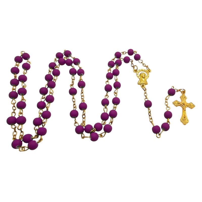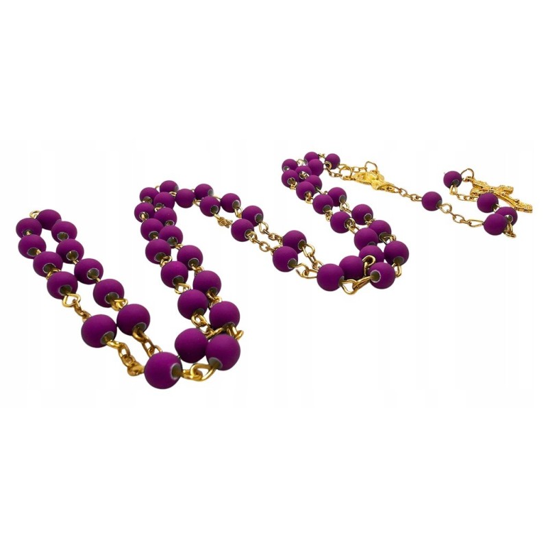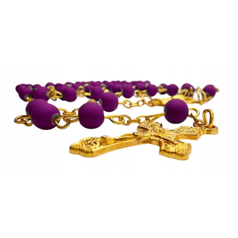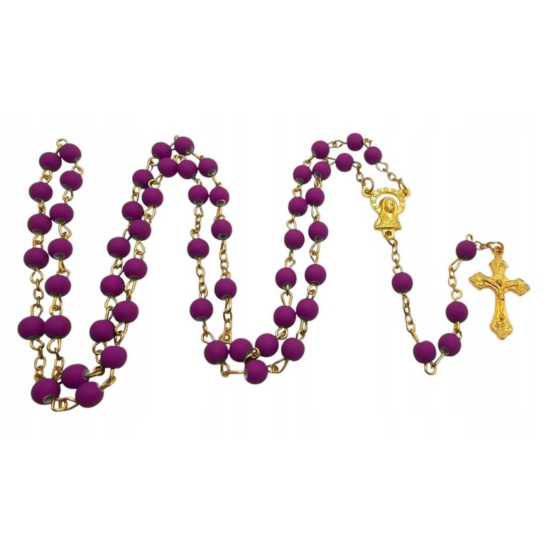 Odkryj wyjątkowe połączenie piękna i elegancji w naszym fioletowym różańcu, umieszczonym w stylowym słoiczku ze złotym wieczkiem. Całość prezentuje się niezwykle wytwornie i stanowi idealny pomysł na luksusowy prezent. Różaniec wykonany jest z matowych, fioletowych koralików o wielkości 6 mm, które cudownie współgrają z delikatnym, złotym łańcuszkiem. Łącznikiem różańca jest wizerunek Maryi, a całość wieńczy piękny krzyż o wymiarach 28x18 mm. Długość różańca wynosi 49 cm. Słoiczek o wysokości 5 cm dodaje całości ekskluzywnego charakteru.