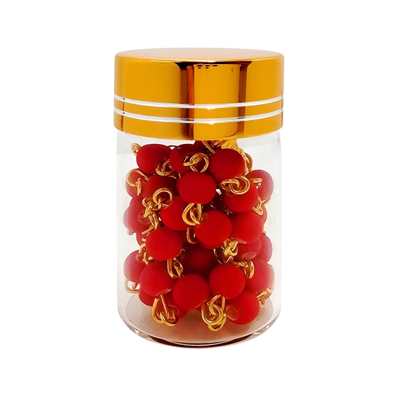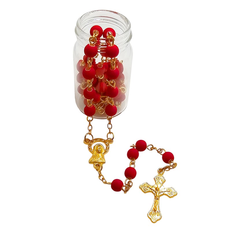 Elegancki Czerwony Różaniec na Złotym Łańcuszku w Słoiczku - Religijny Prezent Premium.