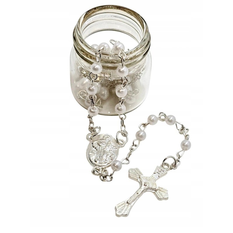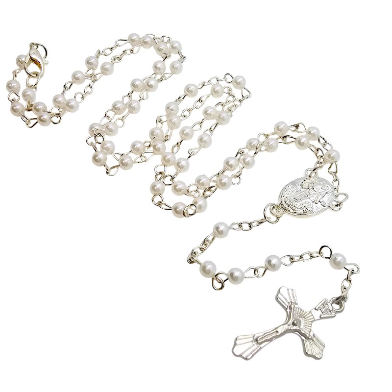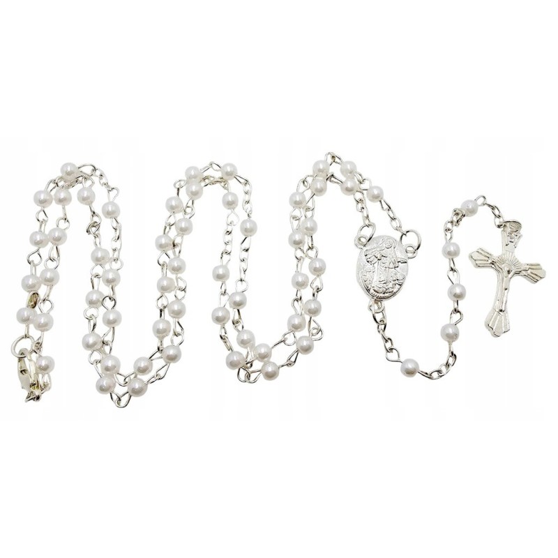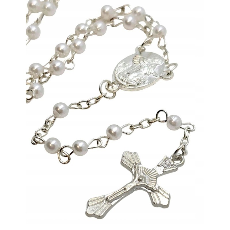 Materiał różańca: Plastik (koraliki perłowe), łańcuszek