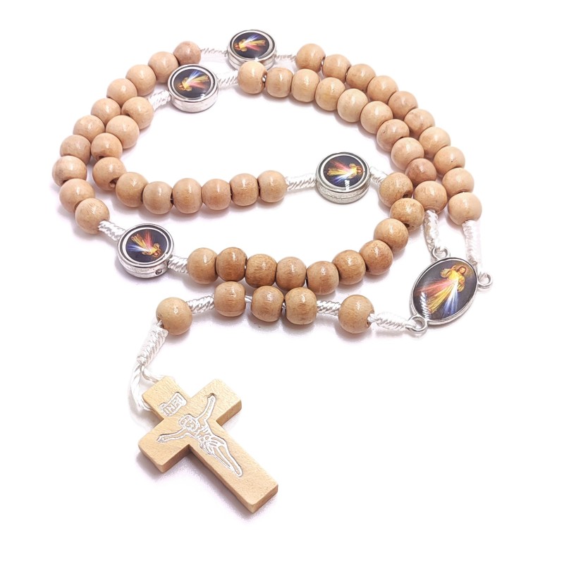 Drewniany Różaniec Jezu Ufam Tobie - Beżowy Różaniec z Okrągłymi Koralikami.