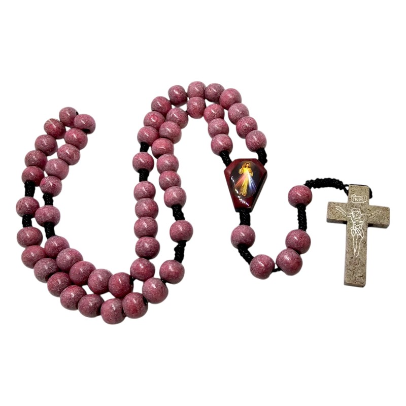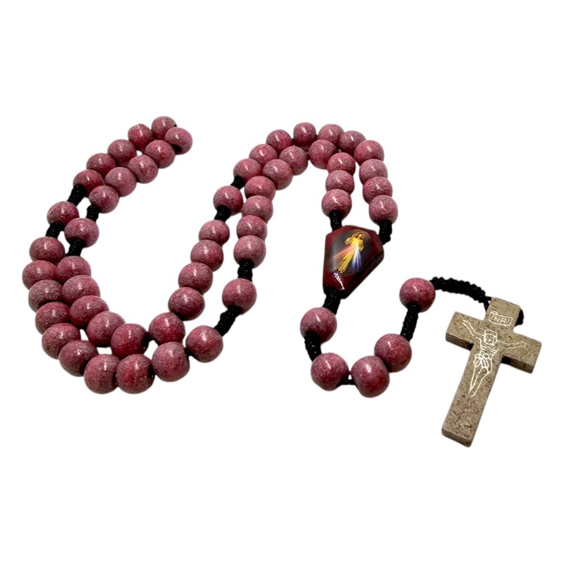 Poczuj naturalne piękno i głęboką duchowość z naszym różowym drewnianym różańcem, wykonanym na sznurku, idealnym do codziennej modlitwy i medytacji. To wyjątkowe dewocjonalium łączy tradycję z nowoczesnym akcentem kolorystycznym.