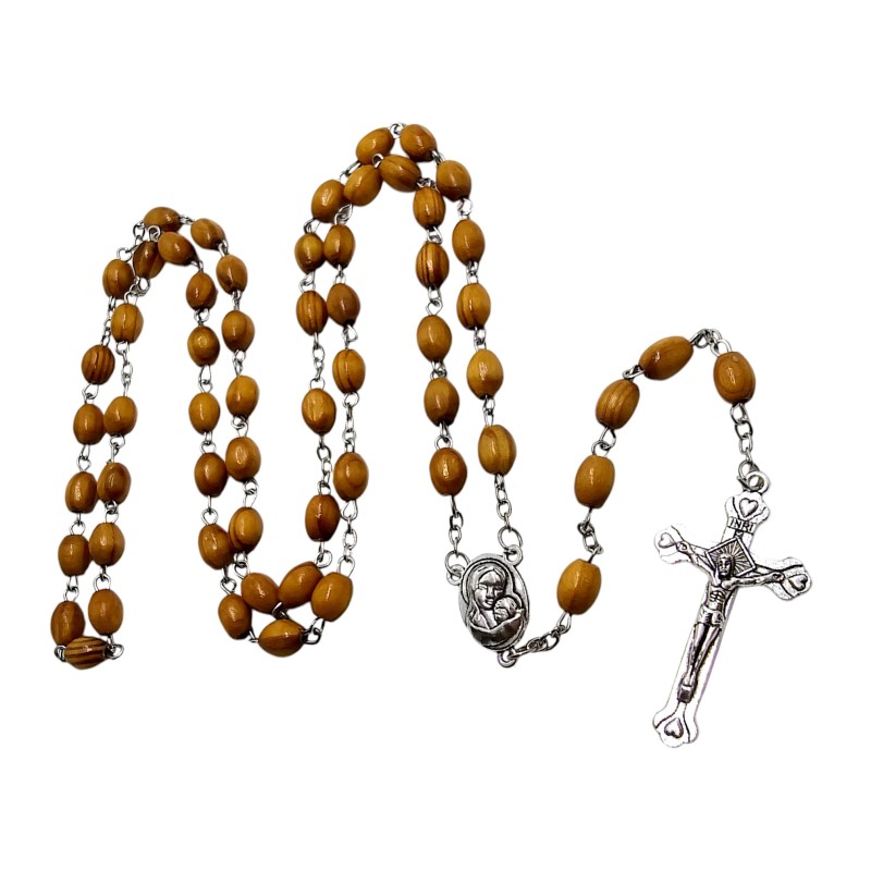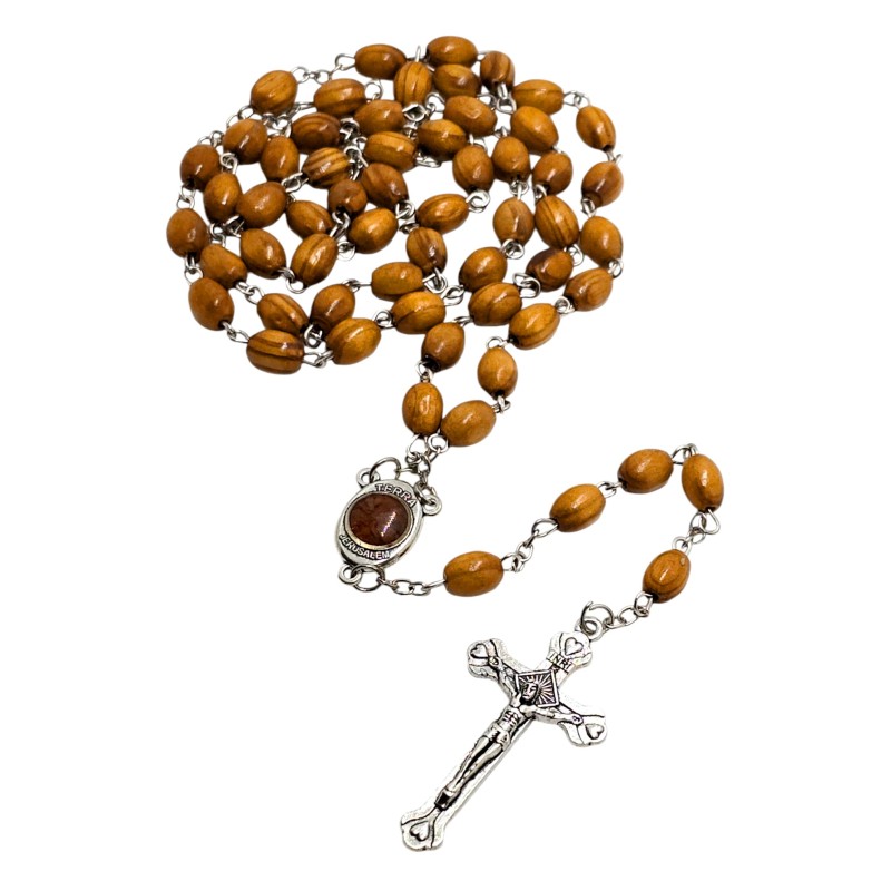 Autentyczne Drewno Oliwne: Koraliki z drzewa oliwnego z Ziemi Świętej dodają różańcowi unikalności i głębi.