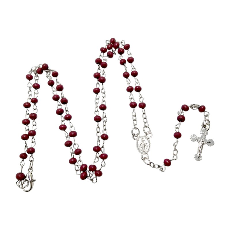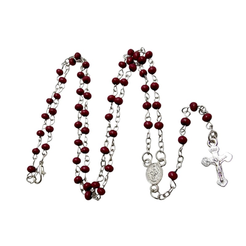Różaniec zachwyca głębokim, bordowym kolorem i kusi delikatnym zapachem róży, który uwalnia się podczas modlitwy, otulając Cię spokojem i refleksją. Składa się z niezwykle drobnych kuleczek o wielkości zaledwie 4 mm, co sprawia, że jest bardzo subtelny i delikatny w dotyku. Jest to różaniec zapinany, co zwiększa jego funkcjonalność, np. możesz go zawiesić w aucie.