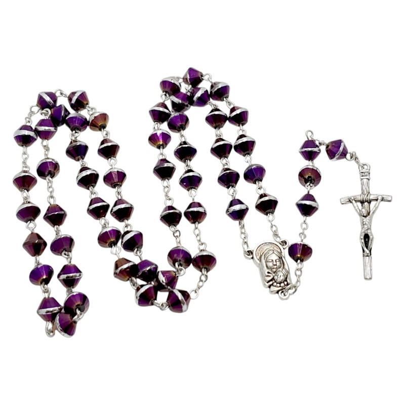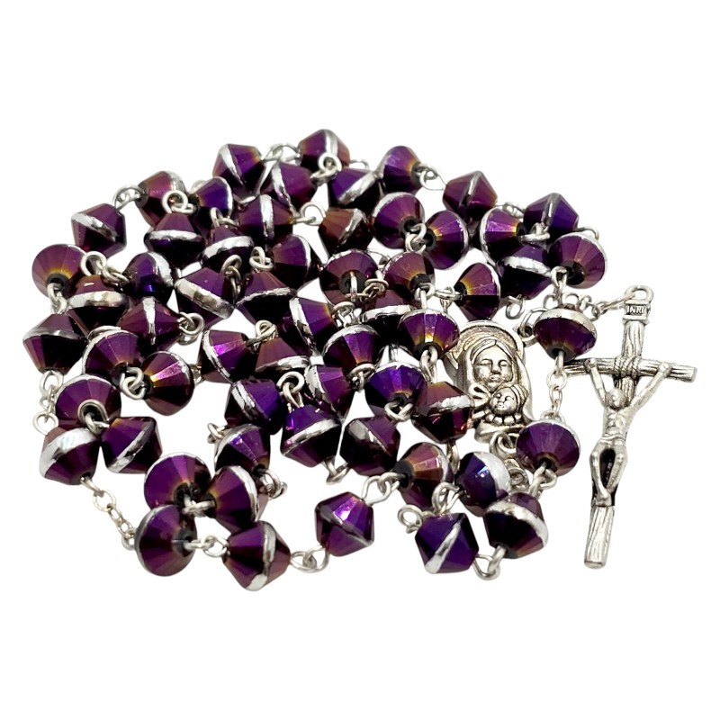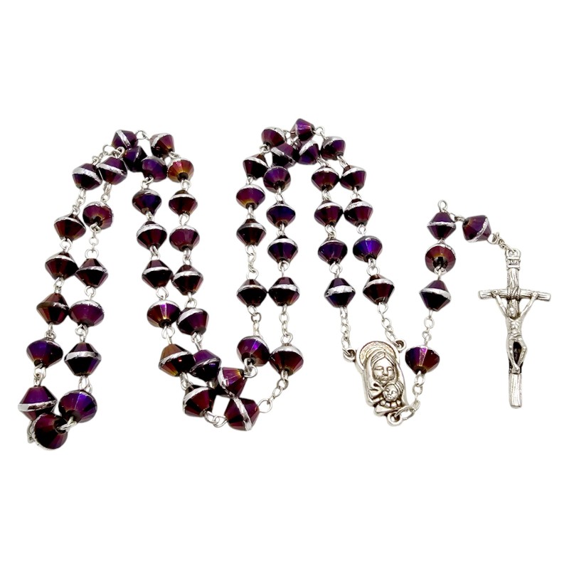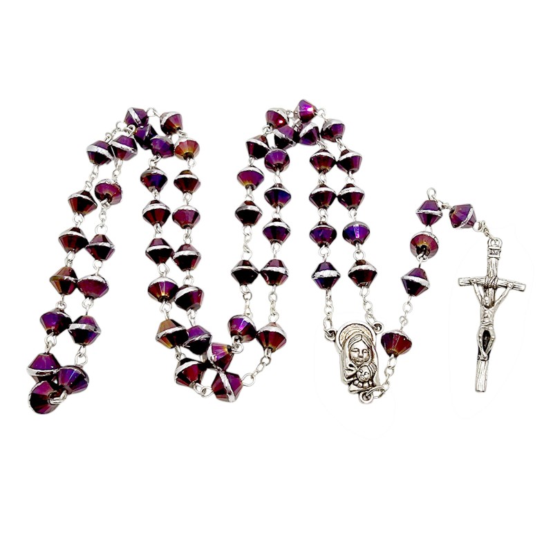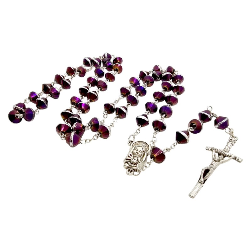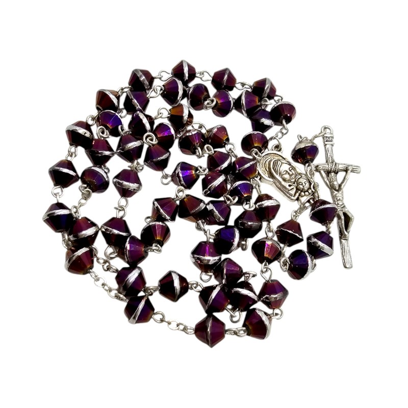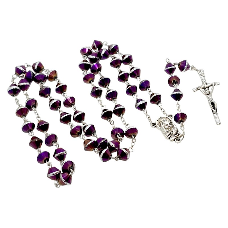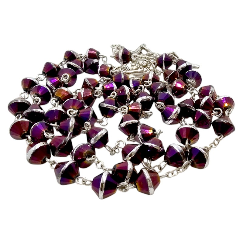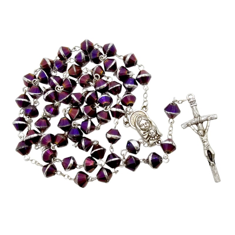 Odkryj duchowe piękno i wyjątkową elegancję z naszym różańcem ze szlifowanego szkła w kolorze fioletowym, idealnym do modlitwy i jako osobisty symbol wiary. To wyrafinowane akcesorium, które łączy w sobie tradycję z nowoczesnym designem.
