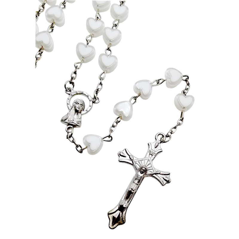 Odkryj głębię modlitwy i piękno wiary z tym niezwykłym, białym różańcem, który przenosi duchowe doświadczenie na nowy poziom. Każdy koralik w kształcie serca symbolizuje miłość – miłość do Boga, miłość do bliźniego i miłość, którą Matka Boża otacza świat. To nie tylko narzędzie do odmawiania różańca, to prawdziwa ozdoba duszy i ciała.