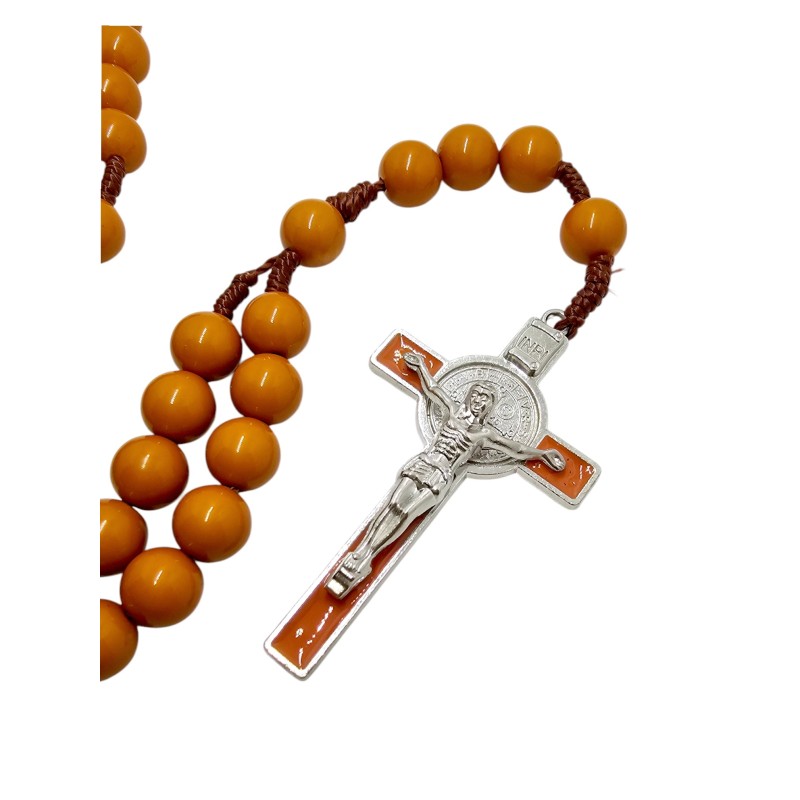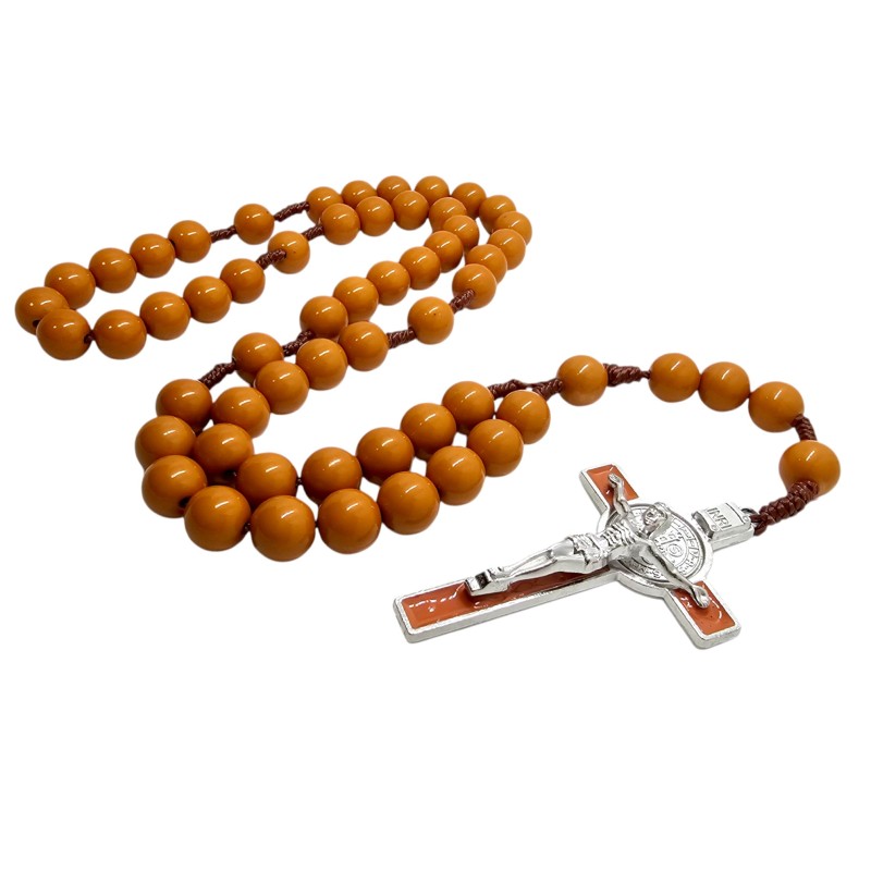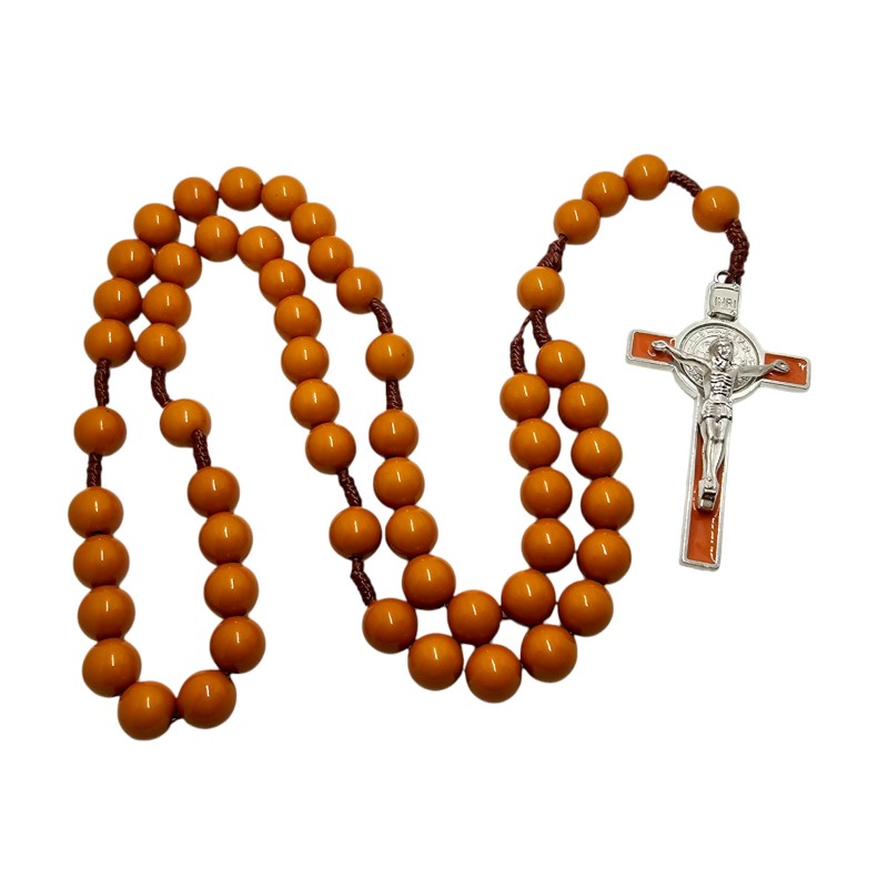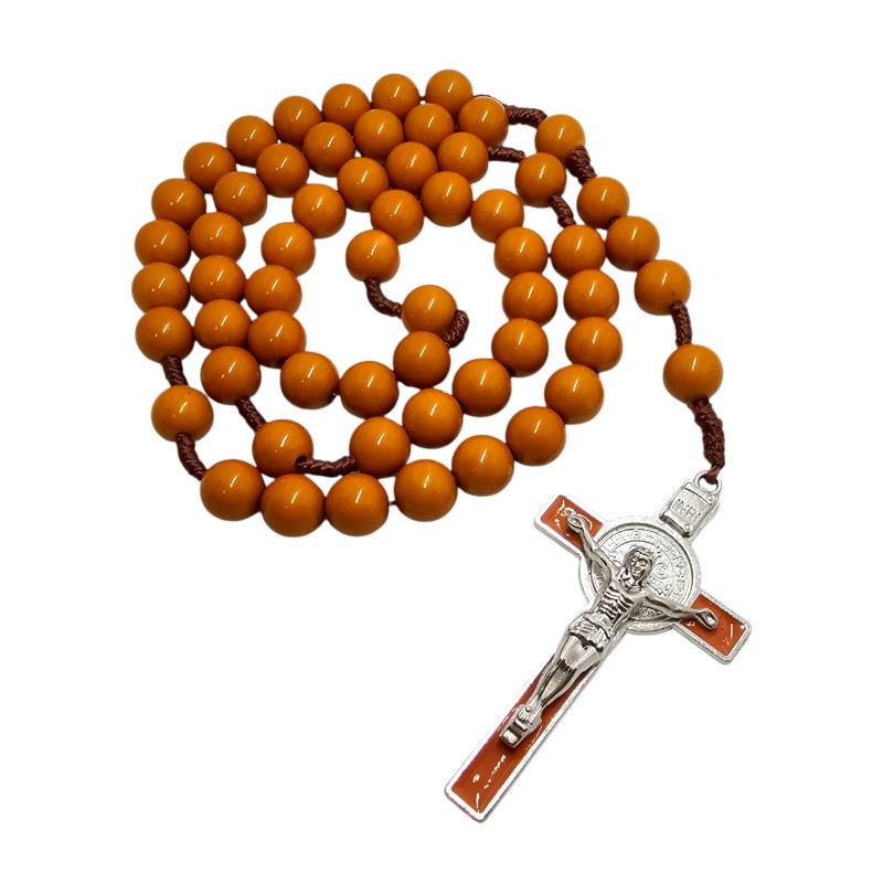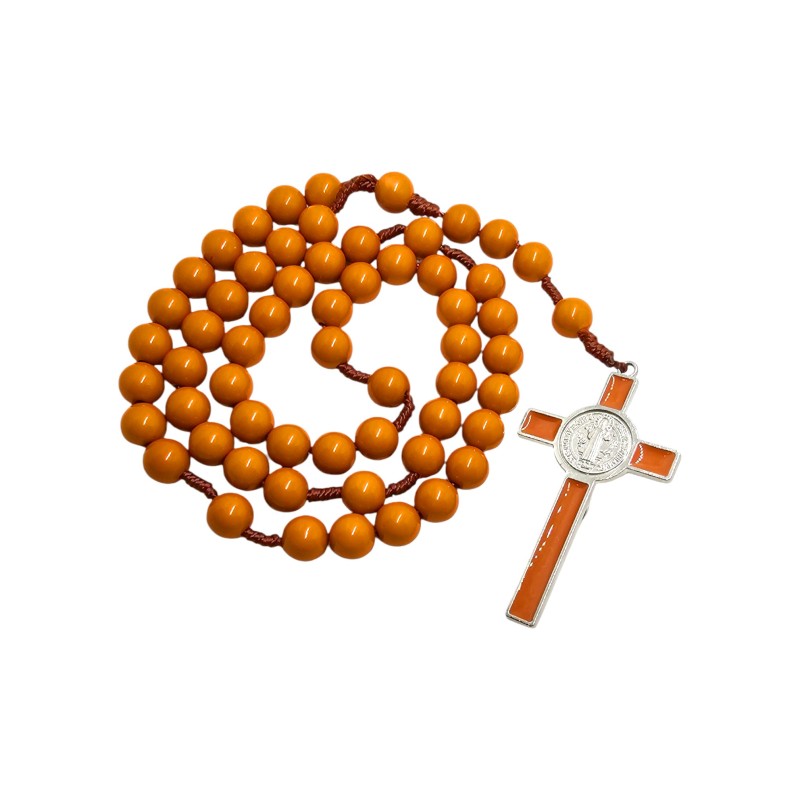 Odkryj prostotę i siłę modlitwy z naszym czerwonym różańcem. Ten pokaźny różaniec wykonany jest z plastiku, ma duże koraliki i piękny metalowy krzyż św. Benedykta w kolorze brązowym. Całość wykonana jest na brązowym sznurku. Różaniec ten jest idealny do modlitwy w zaciszu domowym.