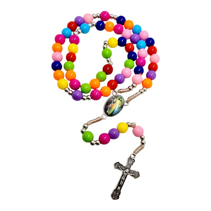 Zaproś swoje dziecko do modlitwy z tym radosnym, kolorowym różańcem dziecięcym! Wykonany z bezpiecznych, lekkich materiałów, jest idealny do nauki i codziennej modlitwy, jednocześnie zachęcając najmłodszych swoim atrakcyjnym wyglądem.
