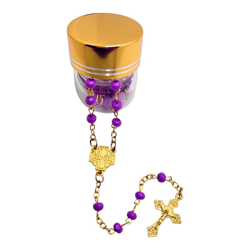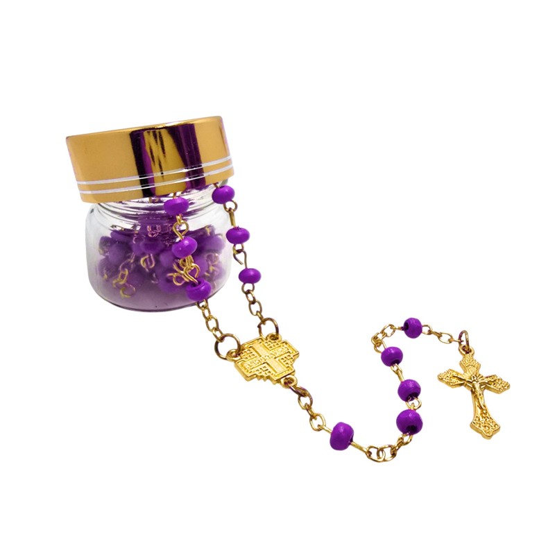 Ten fioletowy różaniec w słoiczku to nie tylko przedmiot modlitewny, ale i piękny akcent dekoracyjny. Jego kompaktowy rozmiar i unikatowy design sprawią, że będzie to cenny podarunek.