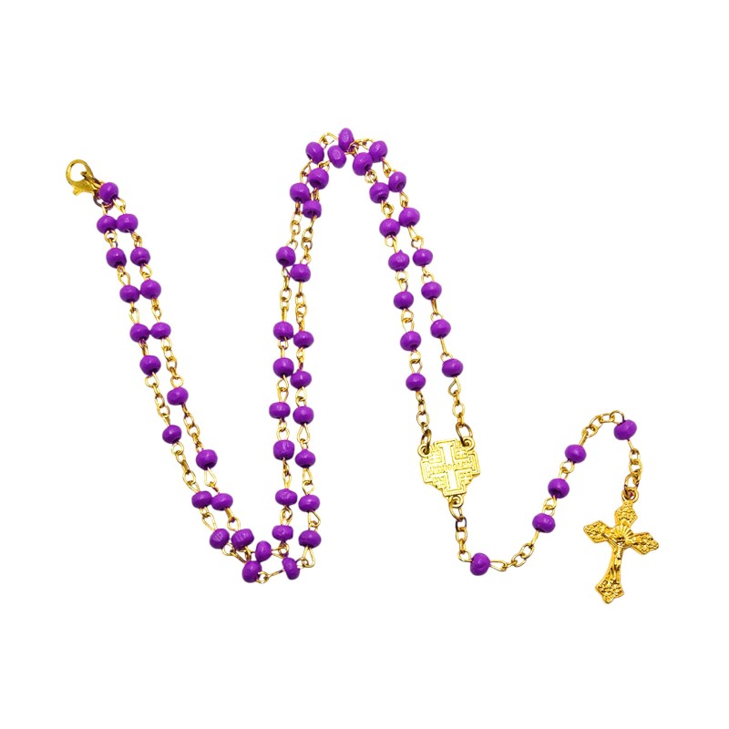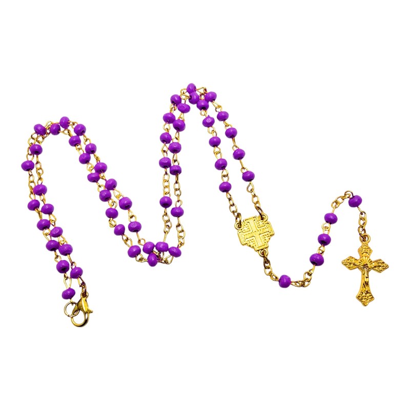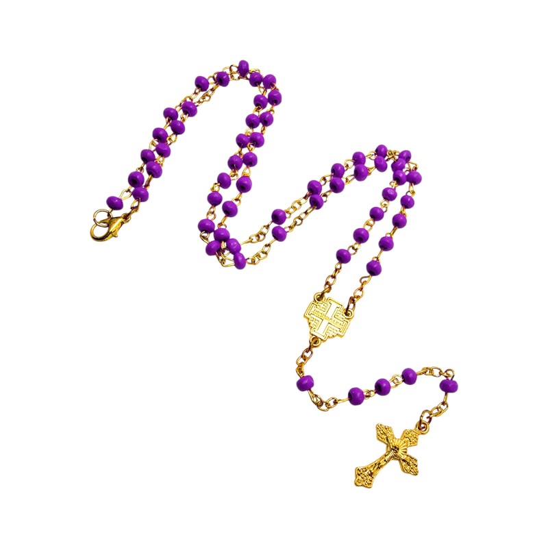 Elegancki Design: Połączenie głębokiego fioletu (kolor symbolizujący Adwent i Wielki Post) ze złotym łańcuszkiem jest bardzo dostojne i uroczyste.