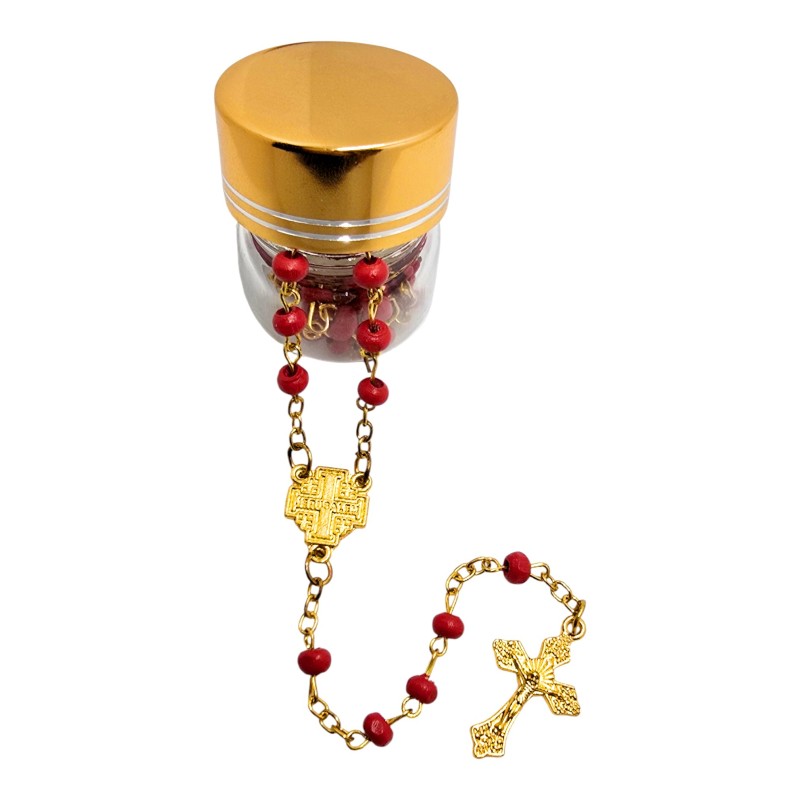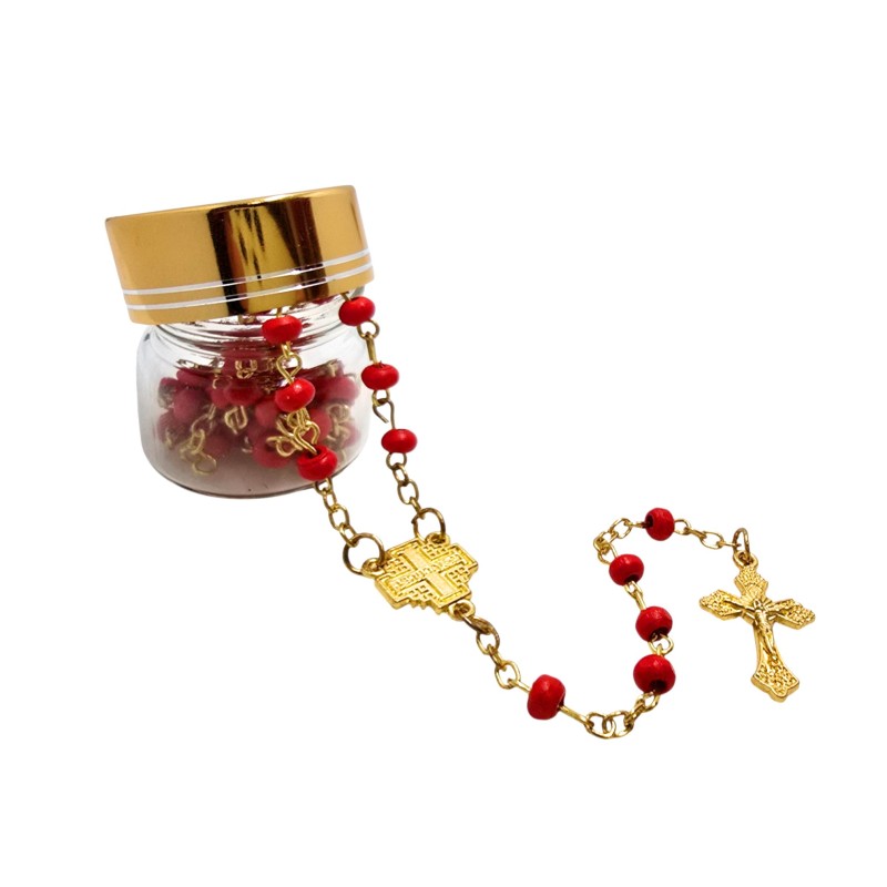 Ten czerwony różaniec w słoiczku to nie tylko przedmiot modlitewny, ale i piękny akcent dekoracyjny. Jego kompaktowy rozmiar i unikatowy design sprawią, że będzie to cenny podarunek.