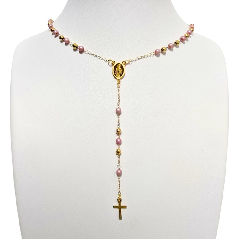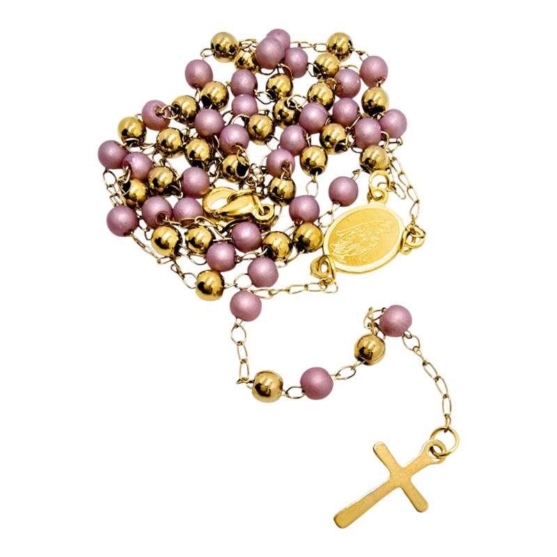 Ten złoto-różowy różaniec to idealny prezent dla osoby ceniącej minimalizm i elegancję w dewocjonaliach. Jest to piękny akcent, który można nosić na co dzień.