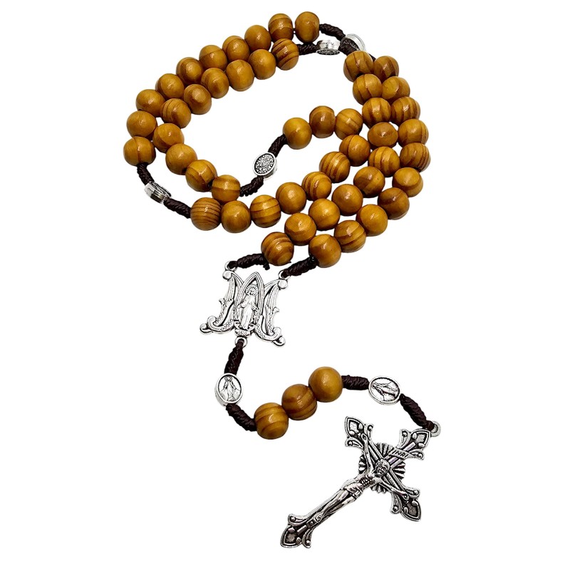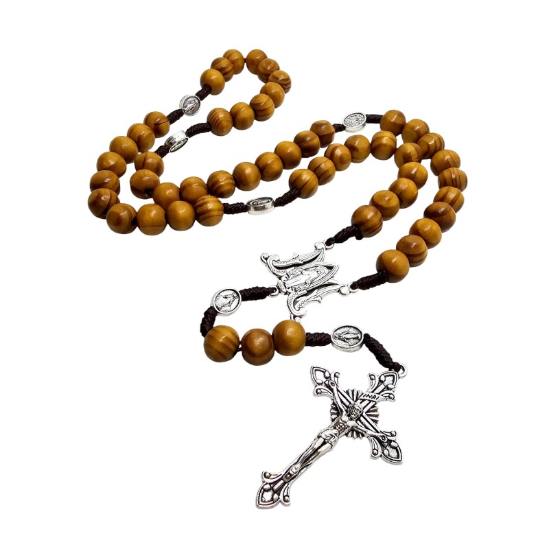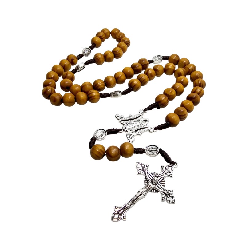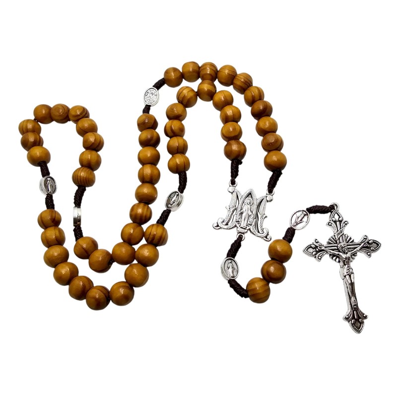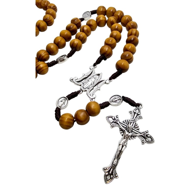 Ten wyjątkowy różaniec z drzewa oliwnego to produkt o głębokim duchowym znaczeniu i niepowtarzalnym, naturalnym pięknie. Koraliki wykonane z autentycznego drzewa oliwnego emanują ciepłem i są niezwykle przyjemne w dotyku. Różaniec został ręcznie nawleczony na mocny, brązowy sznurek, co zapewnia jego trwałość i rustykalny charakter. Jest to idealny przedmiot modlitewny i wartościowy upominek religijny.